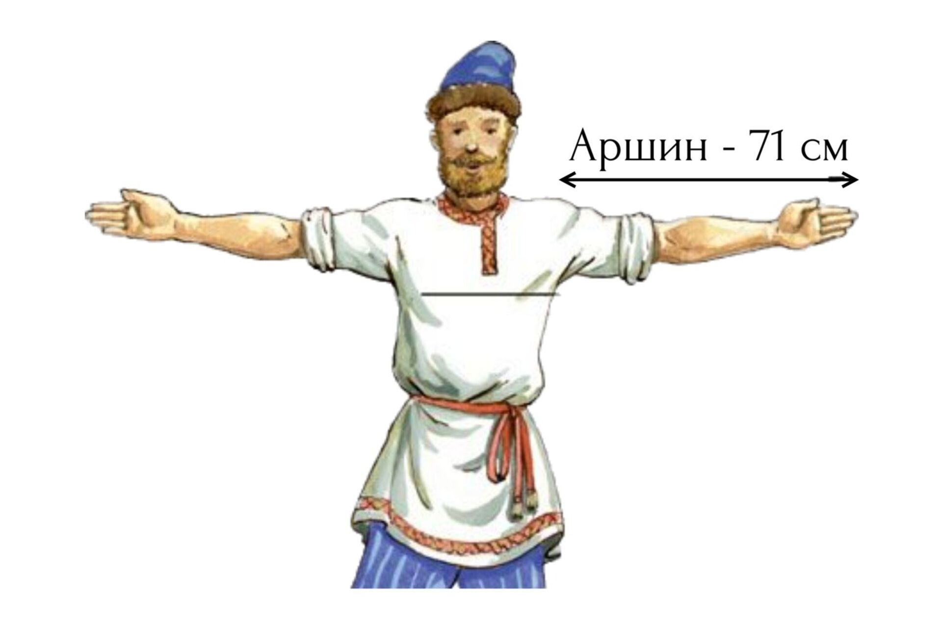 Аршин включал в себя четыре пяди или 16 вершков, то есть равнялся примерно 71 см, что соответствовало длине руки от плеча до кончика среднего пальца. Аршином называли и линейку такой же длины с нанесенными на нее делениями в вершках.