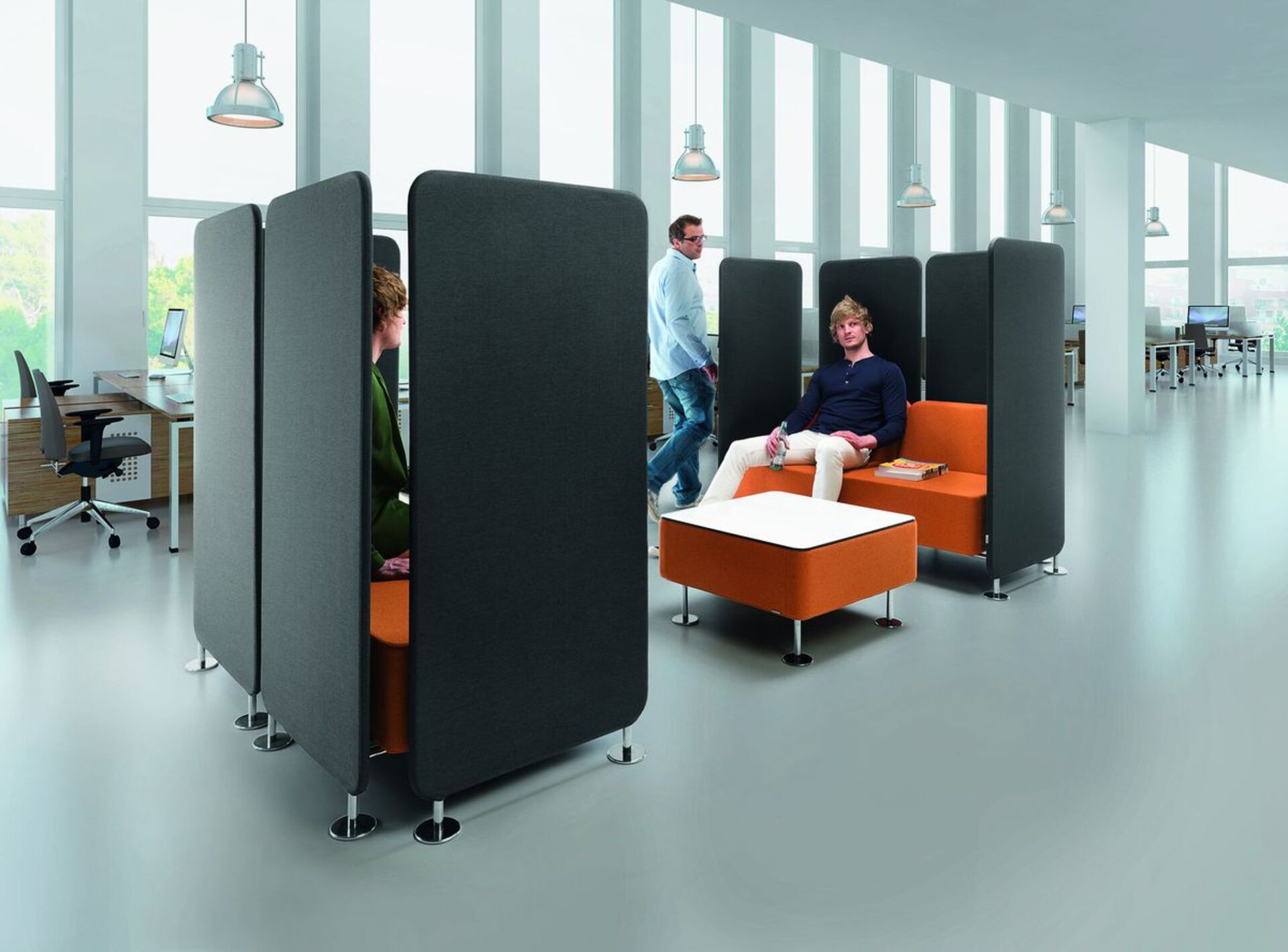 Если ваш офис выполнен в формате open space, удобные перегородки помогут не только обновить интерьер, но и повысить комфорт работы. Необязательно выбирать дорогие конструкции – пластиковые или тканевые модули обойдутся недорого.