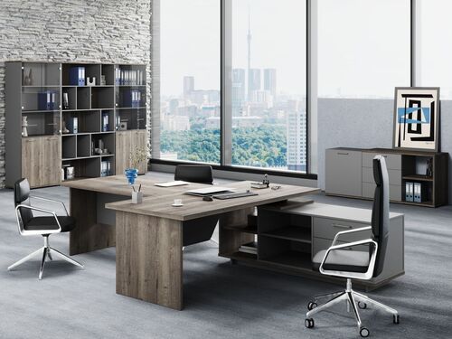 Представленная в каталоге мебель для руководящего состава имеет разную стоимость. Мы предлагаем готовые наборы для обстановки кабинетов с категориях «Эконом», «Бизнес» и «Премиум». Цена комплектов зависит от основного материала и отделки. У нас вы можете заказать мебель для руководителя из: