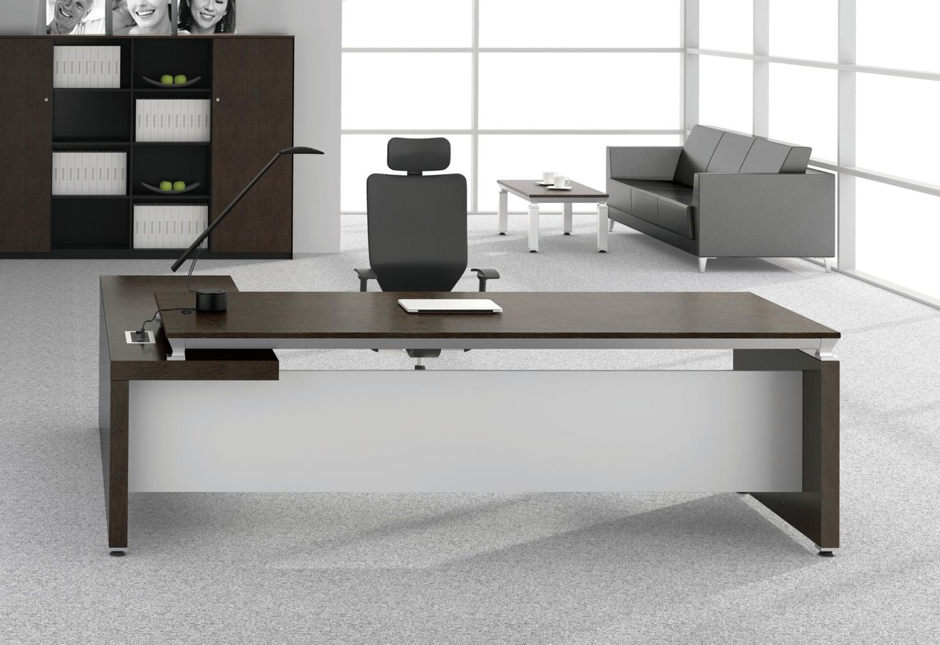 Столы с тумбами являются наиболее популярными: они включают многофункциональный блок с двумя силовыми розетками, USB, розетками для интернета. Тумба содержит открытую нишу с полками и специальный отсек для системного блока. Также в коллекцию входят разнообразные шкафы для бумаг высотой от 80 см, мобильные тумбочки, шкафы комбинированного типа с гардеробом и журнальные столики. У нас можно заказать кабинет руководителя Easy, чтобы сделать офисное пространство стильным и функциональным!