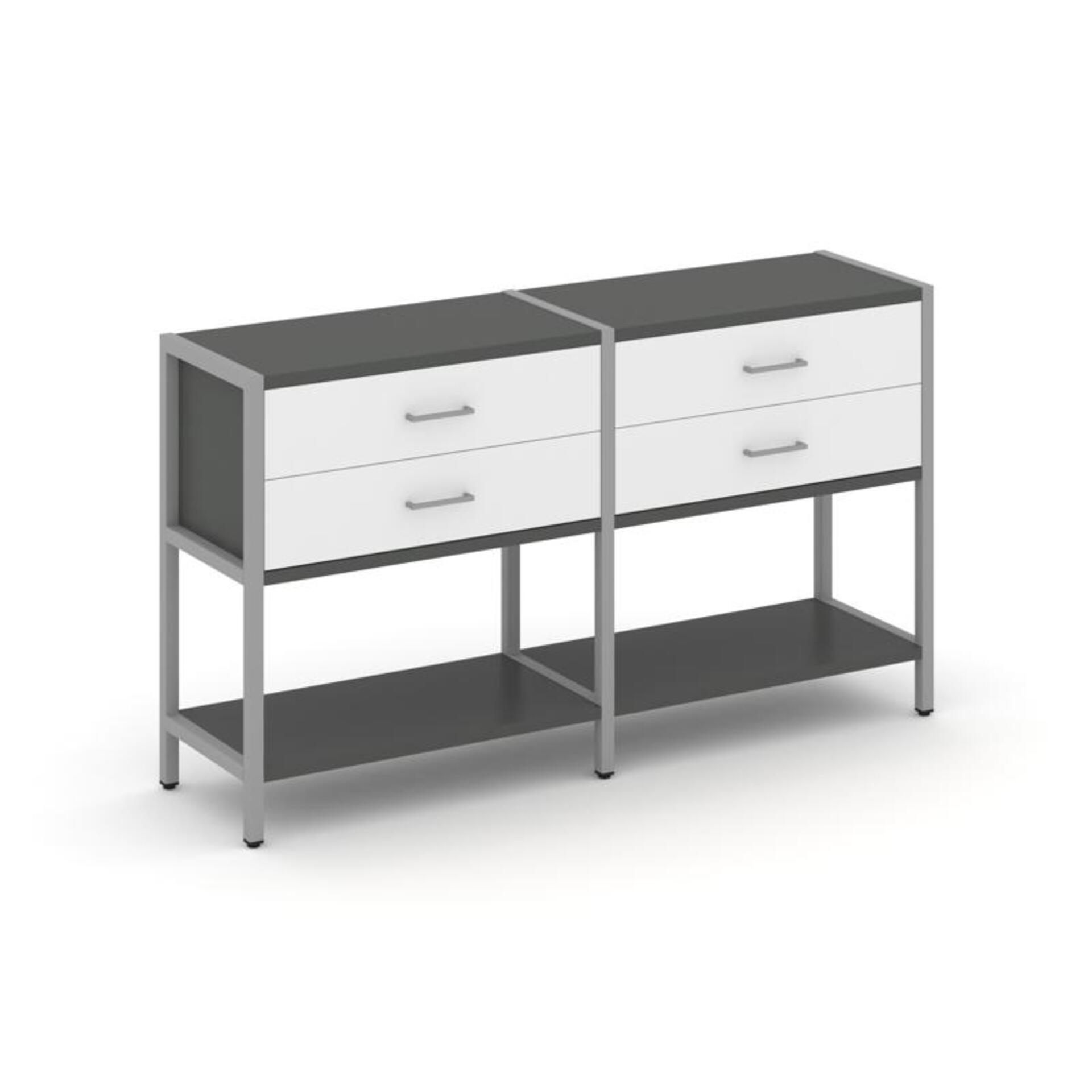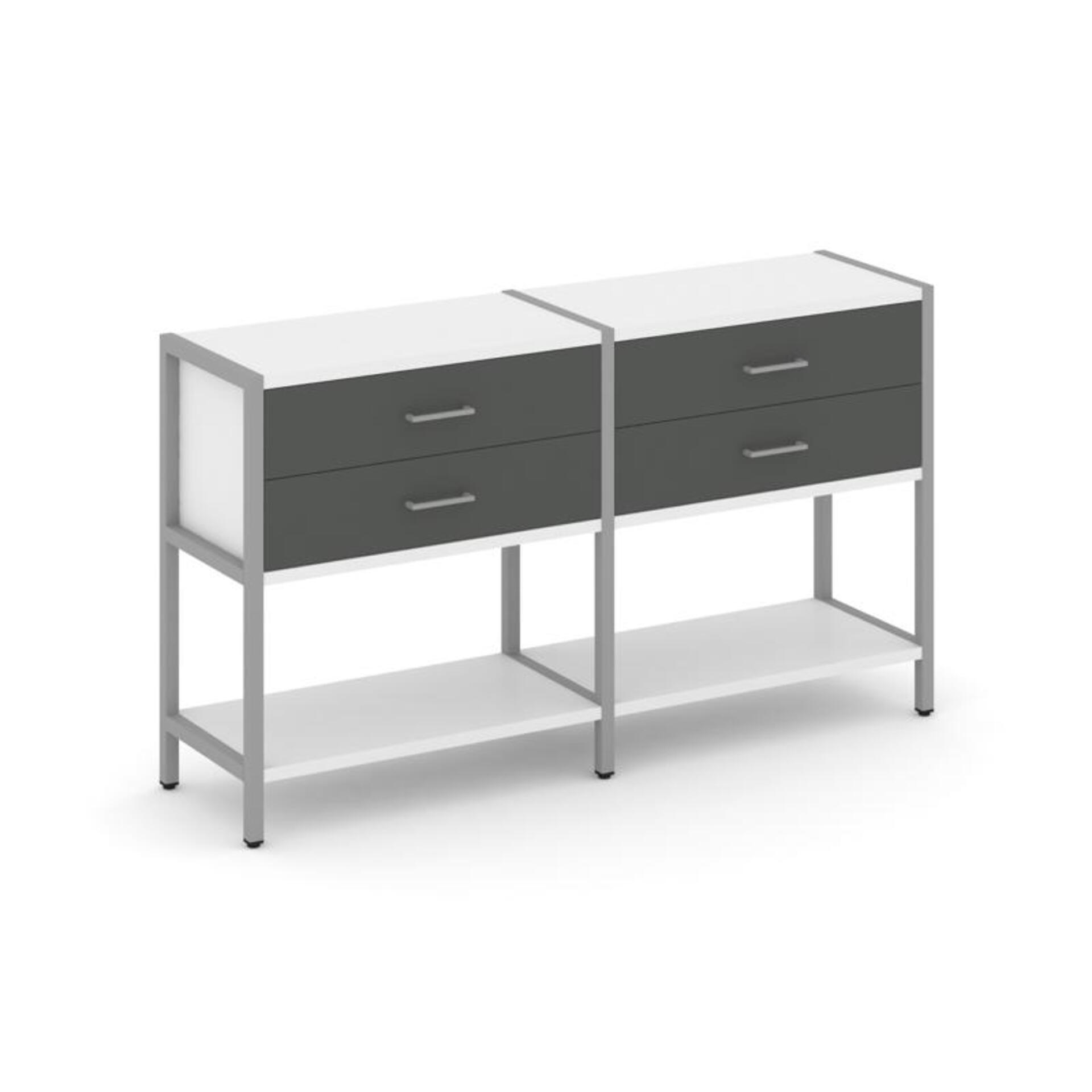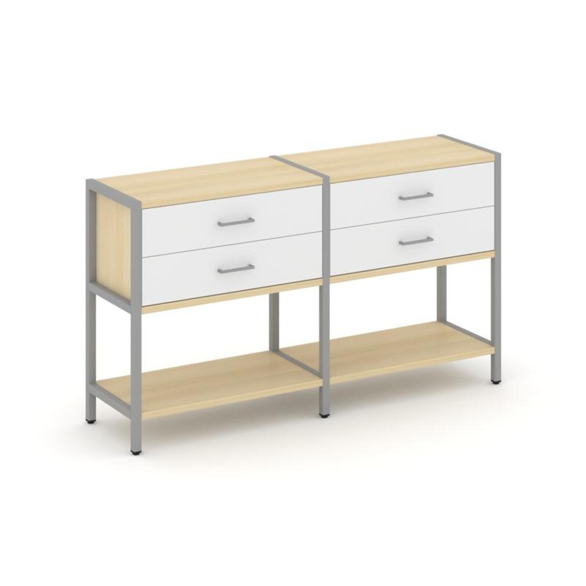 Двухсекционный стеллаж двухярусный с ящиками SN.STM-222
