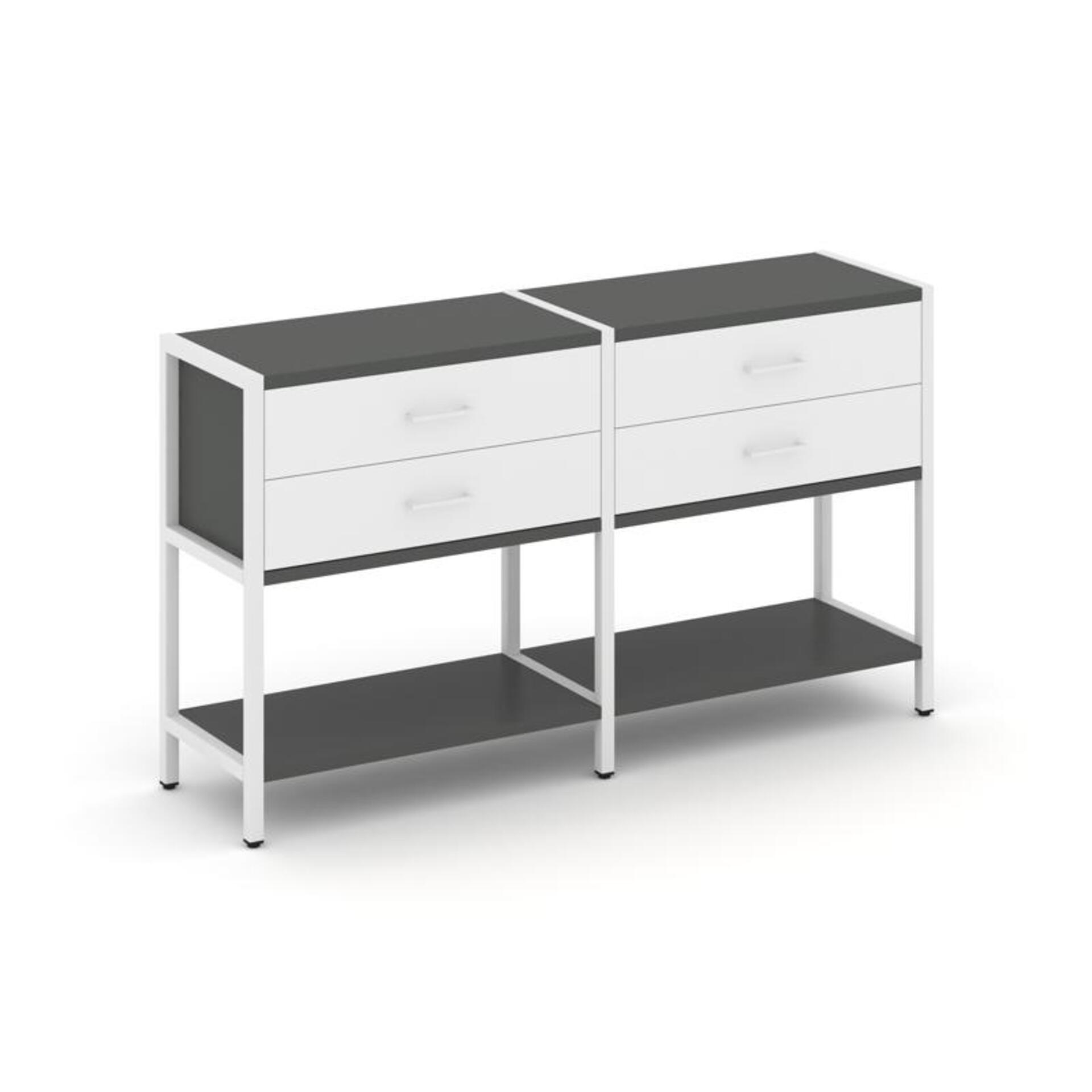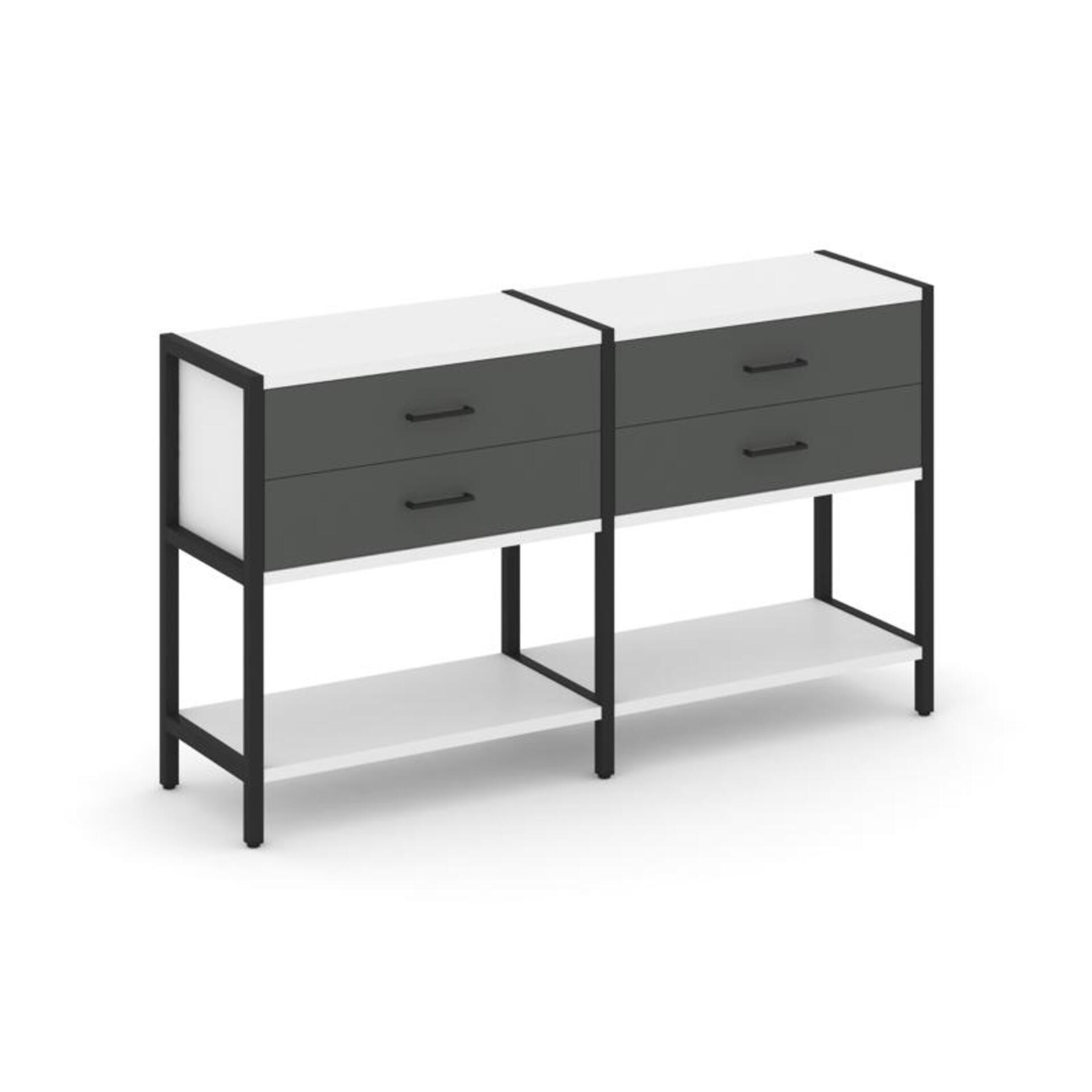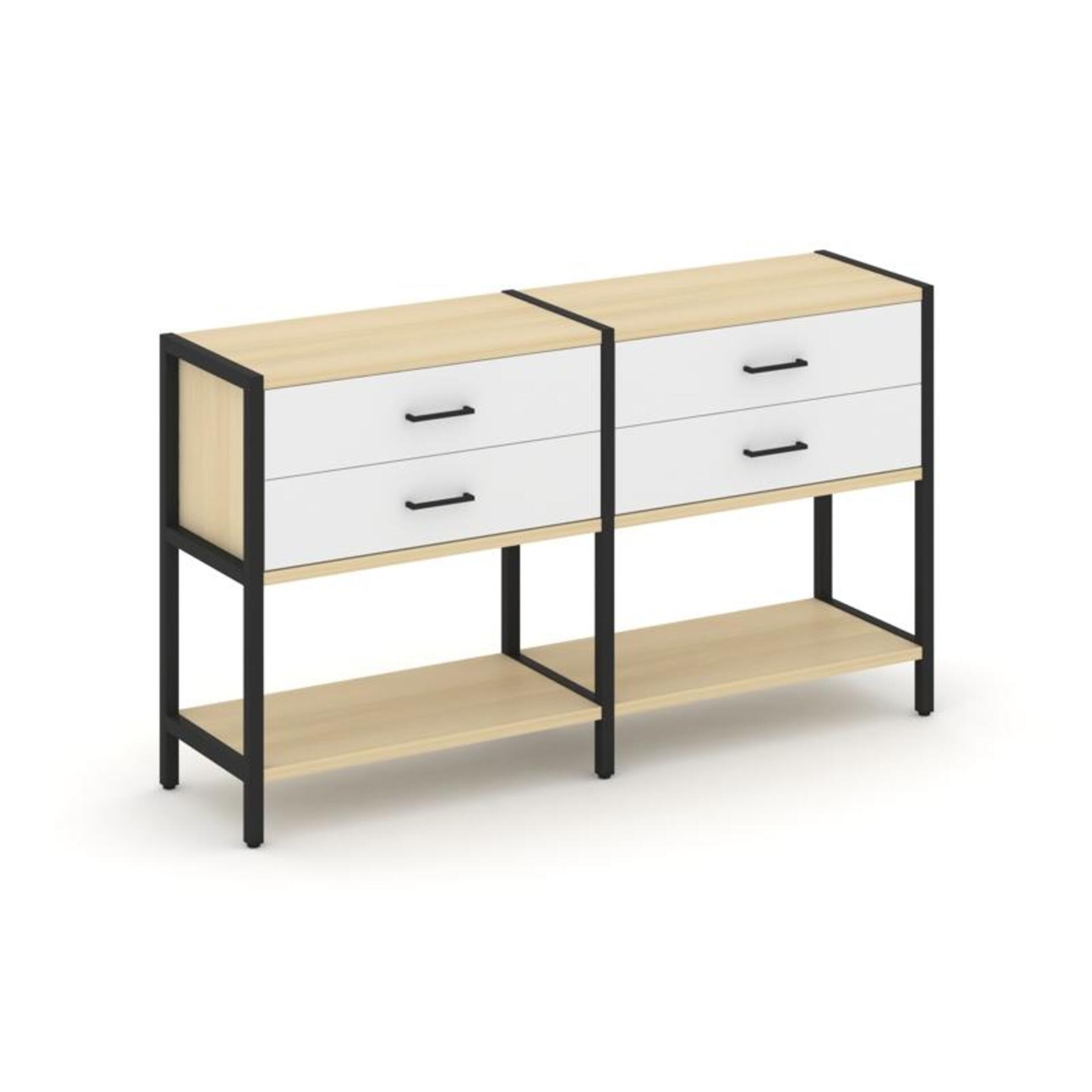 Двухсекционный стеллаж двухярусный с ящиками SN.STM-222