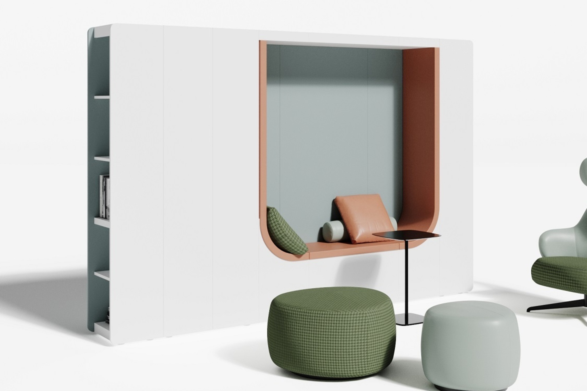 Композиция гардероб с мягкой нишей и боковыми стеллажами ART908
