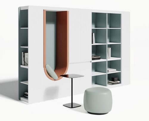 Композиция шкаф высокий со стеллажами и мягкой нишей ART906