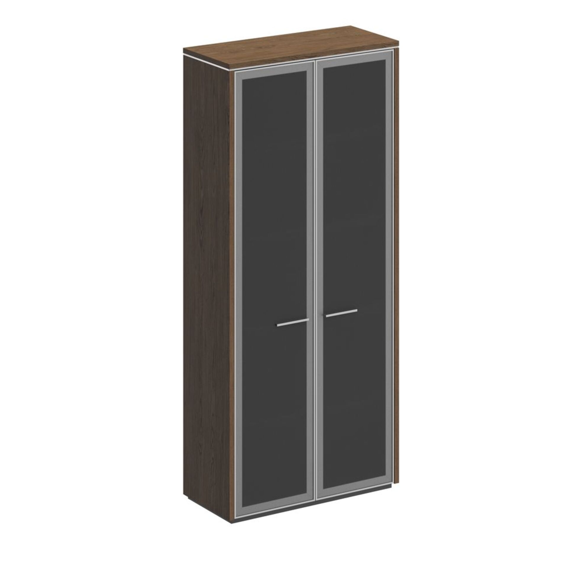 Шкаф высокий комбинированный с боковыми стеллажами (двери в ал. рамке) JNS934