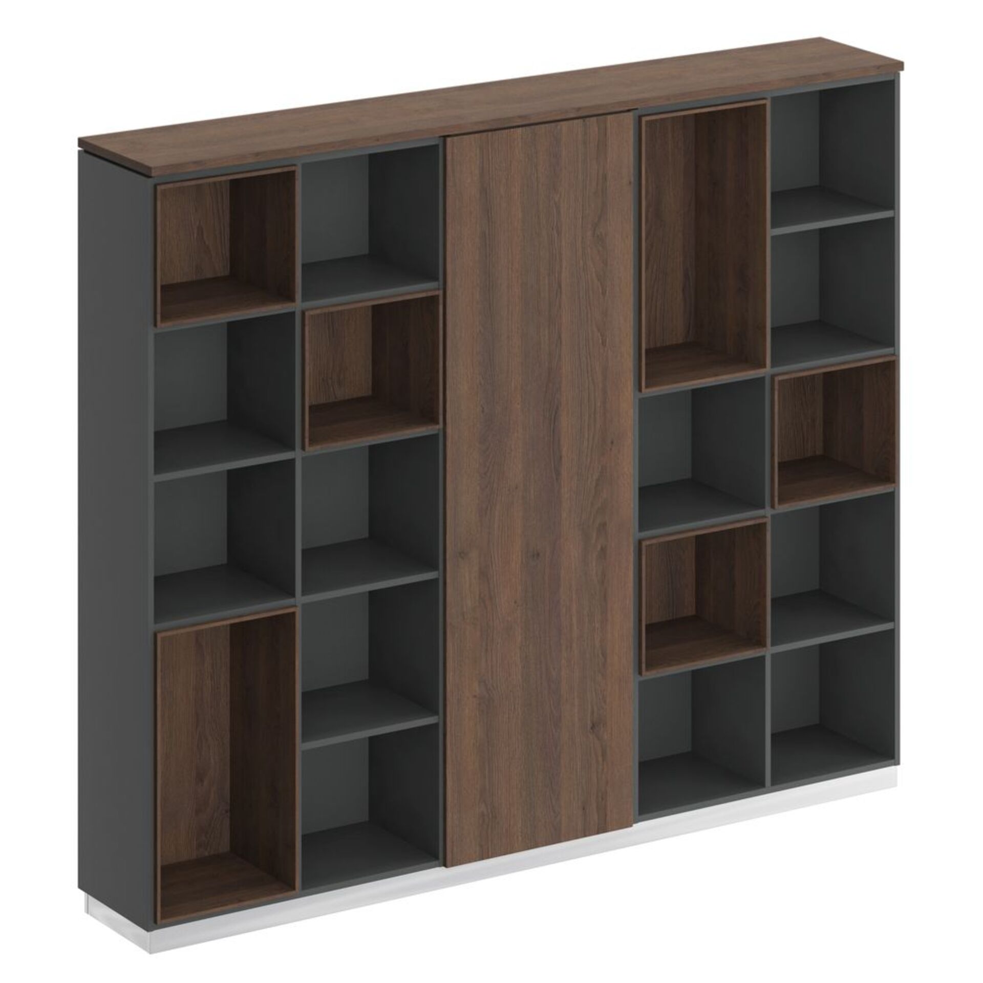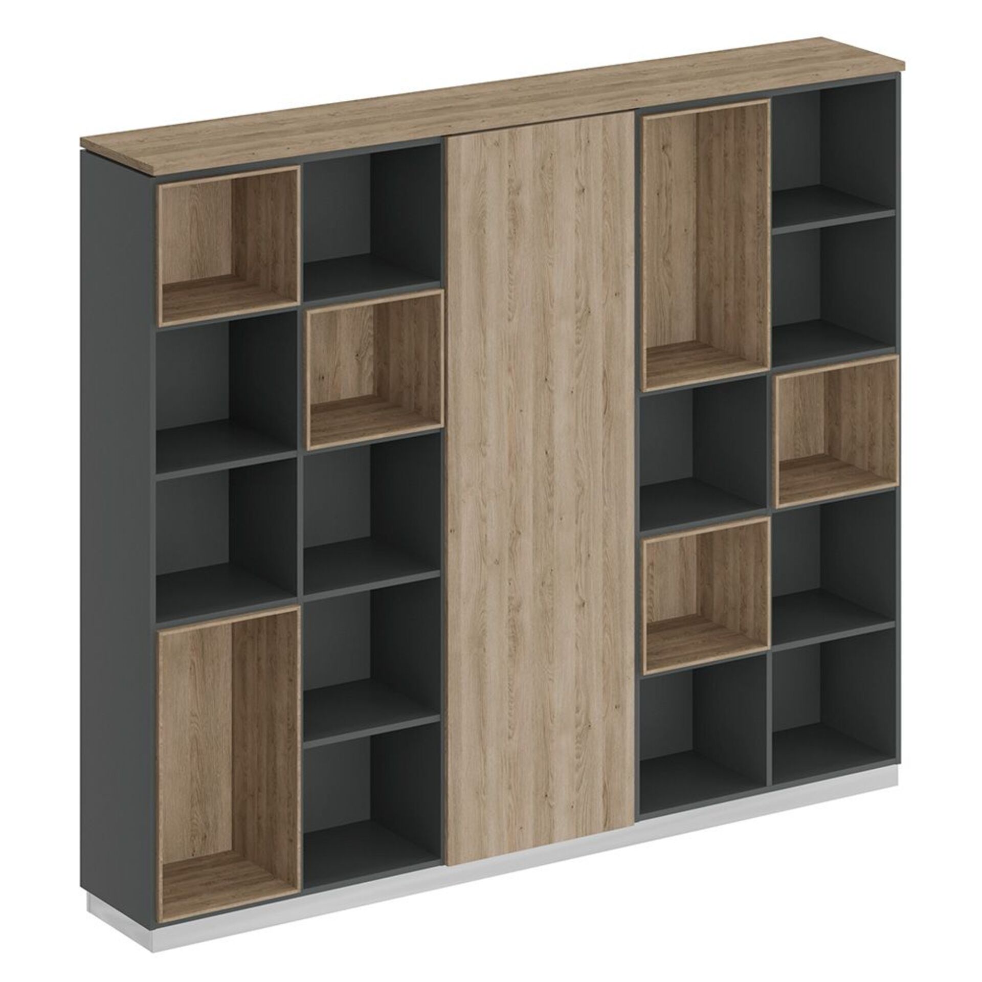 Шкаф высокий комбинированный с боковыми стеллажами (двери в ал. рамке) JNS934