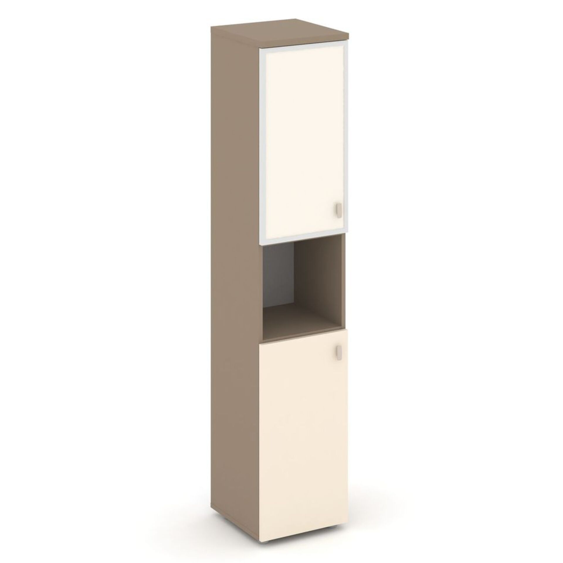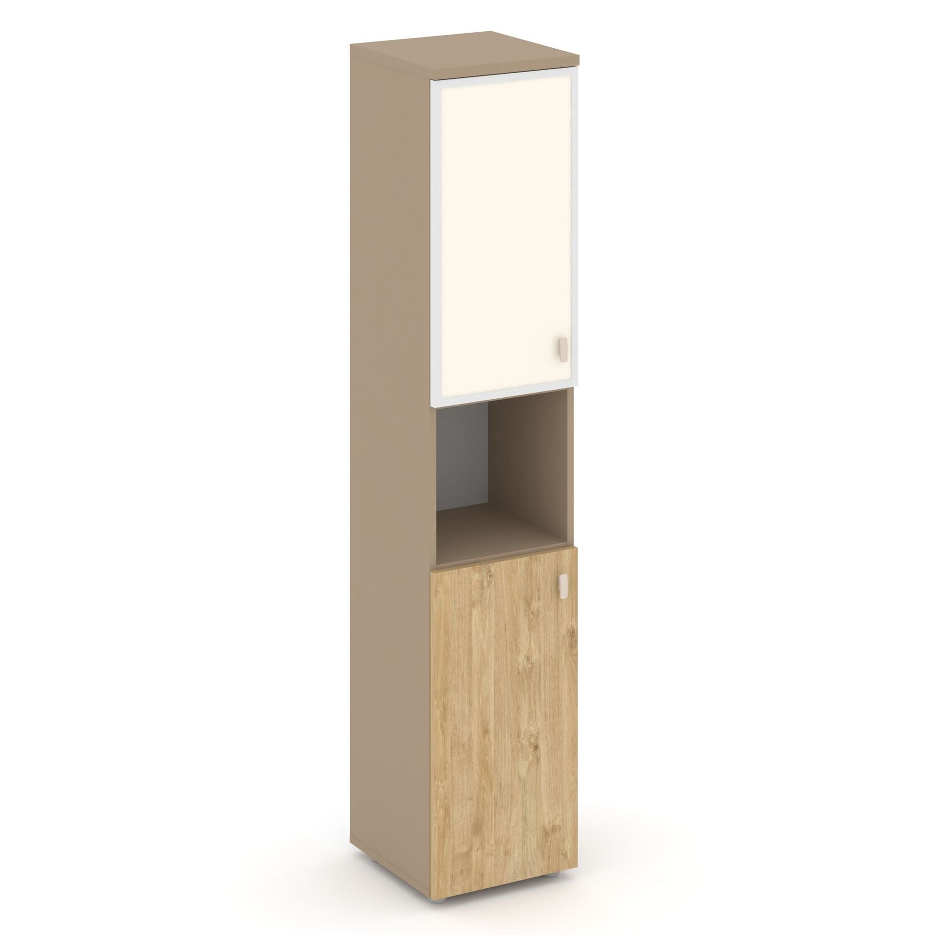 Шкаф высокий узкий левый (1 низкий фасад ЛДСП+1 низкий фасад стекло лакобель в раме) ES.SU-1.4R (L) I