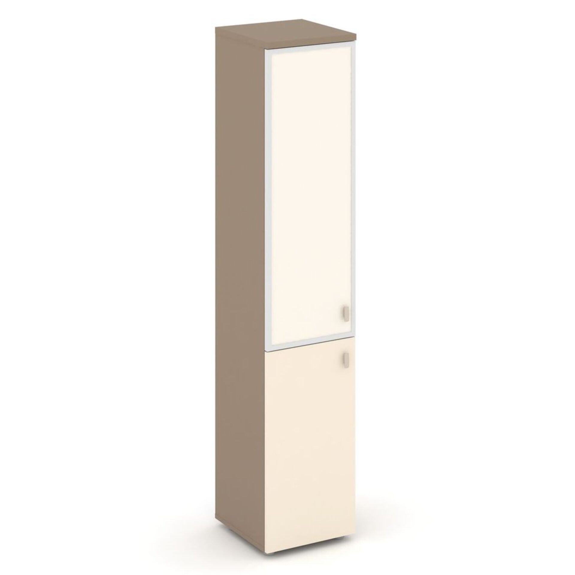 Шкаф высокий узкий левый (1 низкий фасад ЛДСП+1 средний фасад стекло лакобель в раме) ES.SU-1.2R (L) I