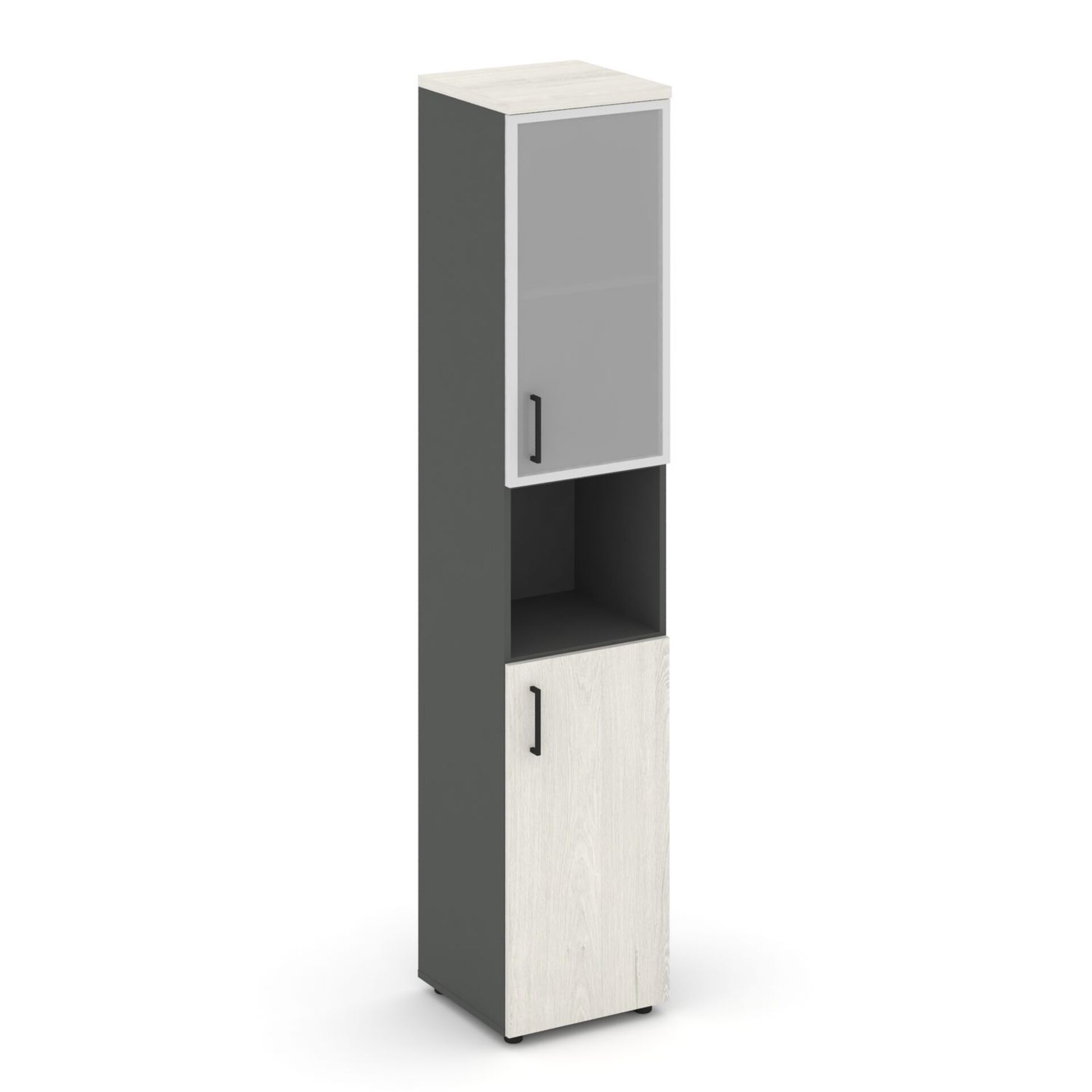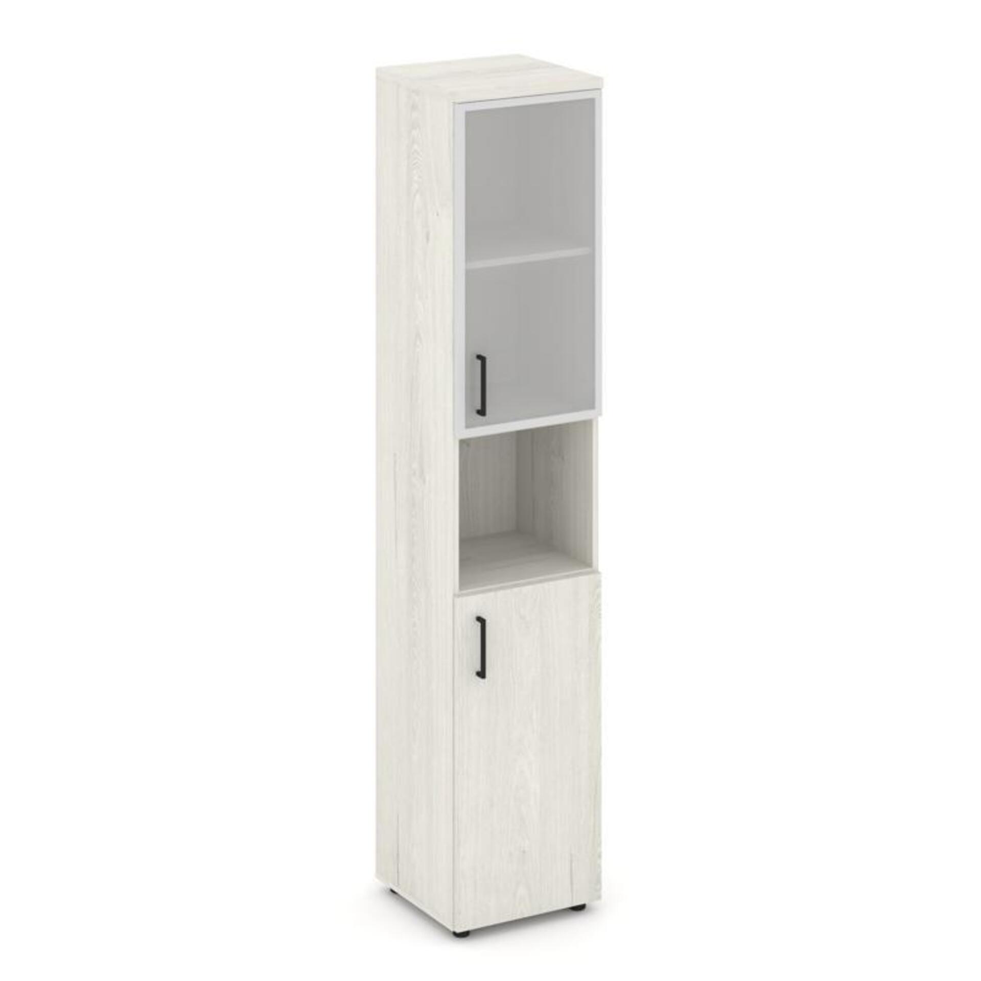 Шкаф высокий узкий правый (1 низкий фасад ЛДСП + 1 низкий фасад стекло сатин в раме) SN.STU.E-106(R)