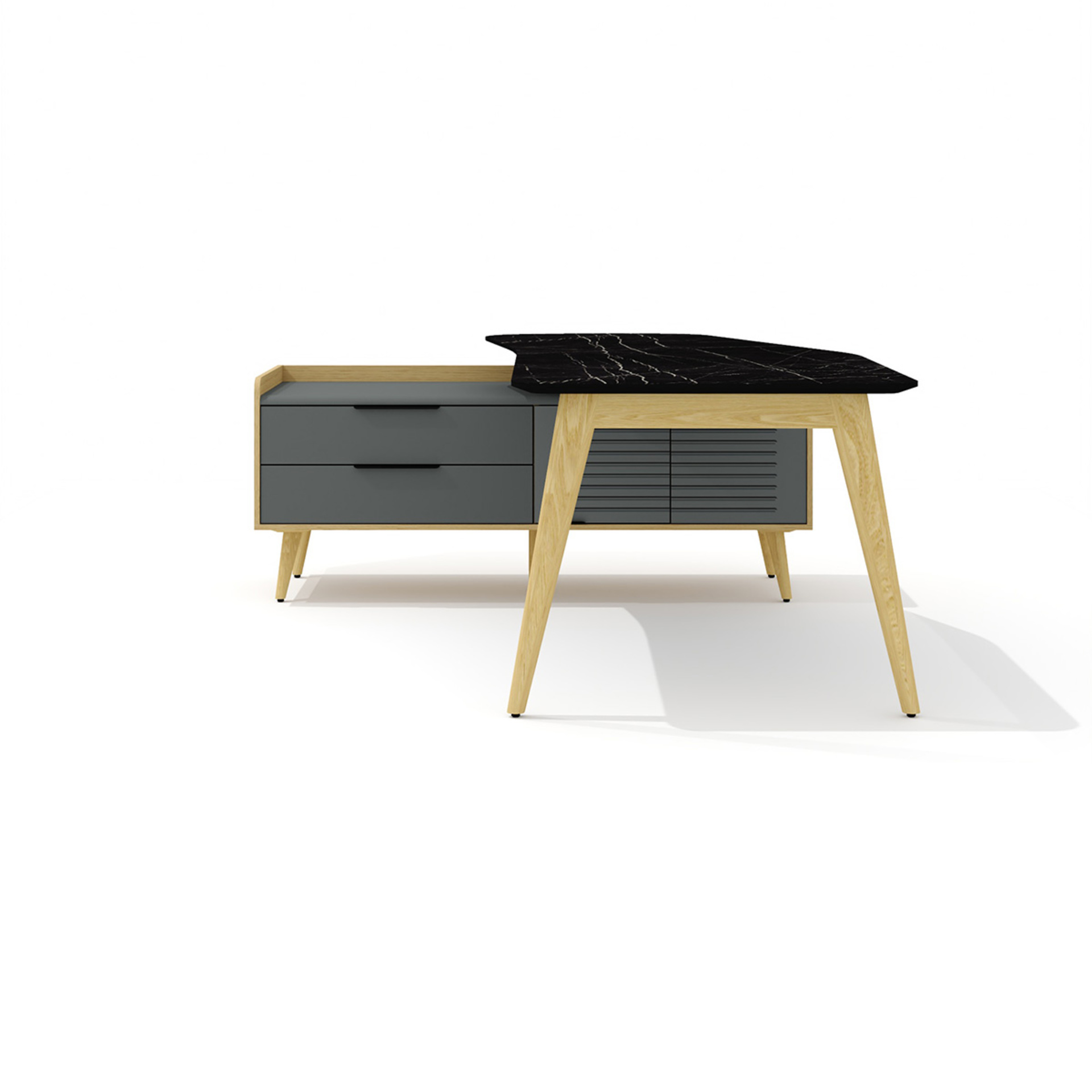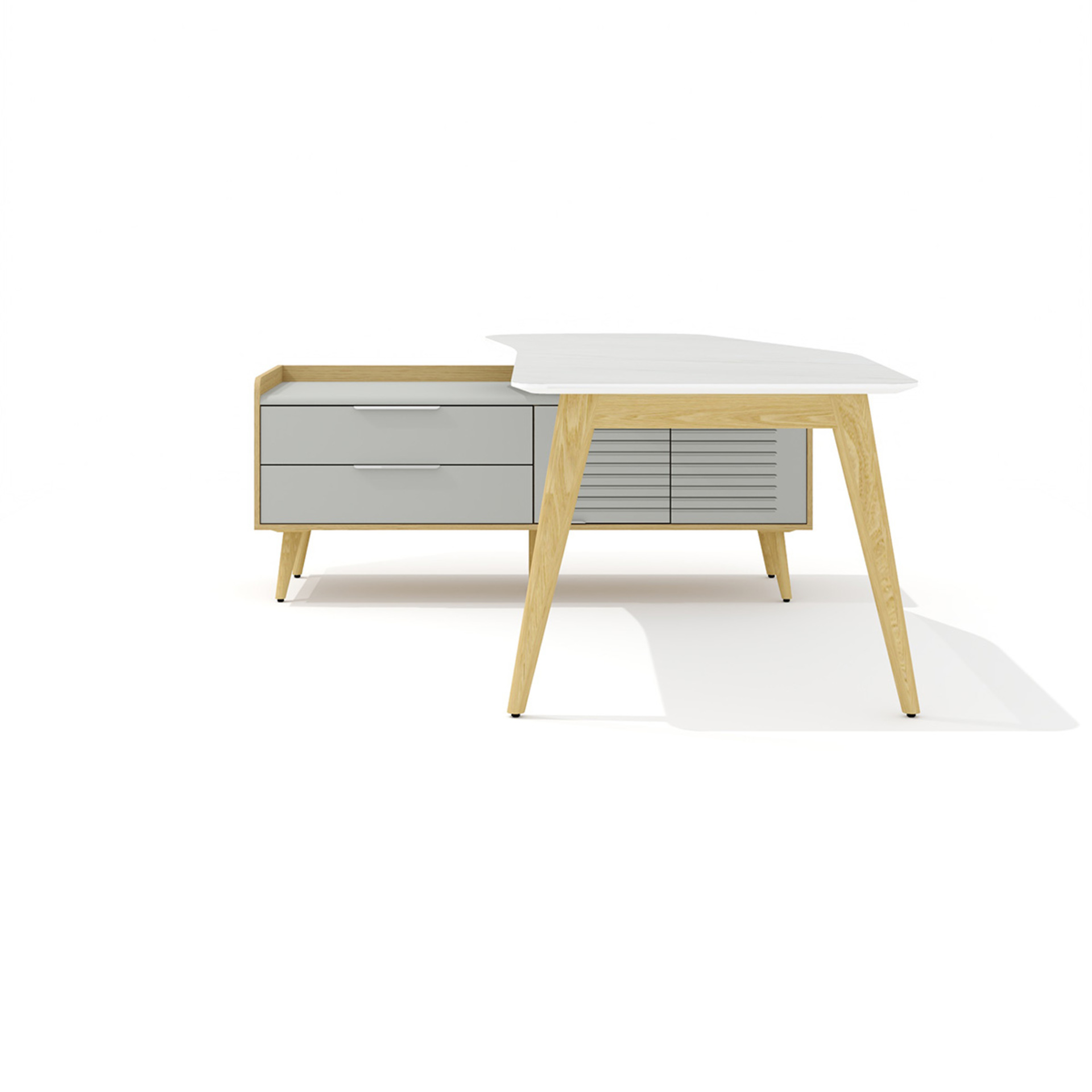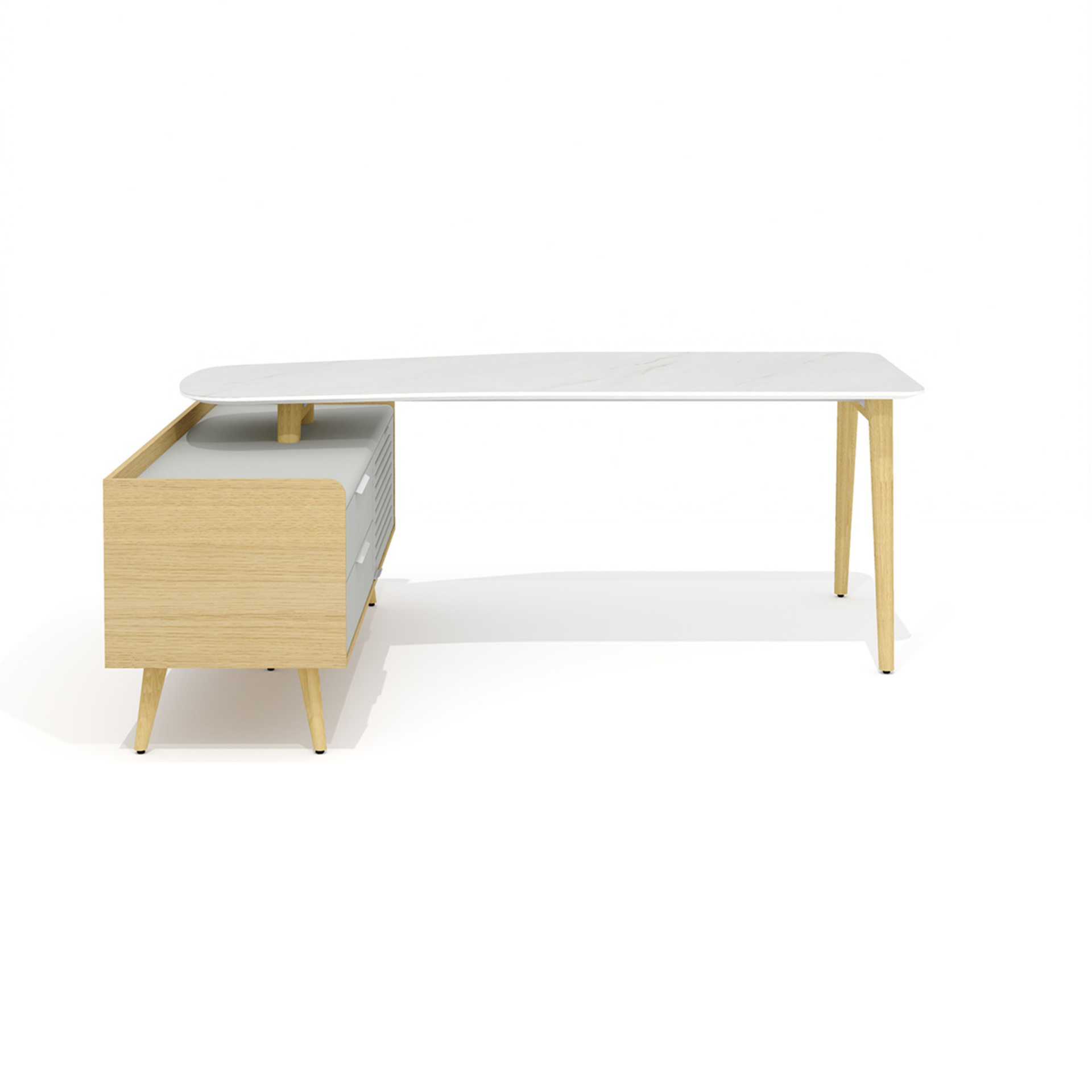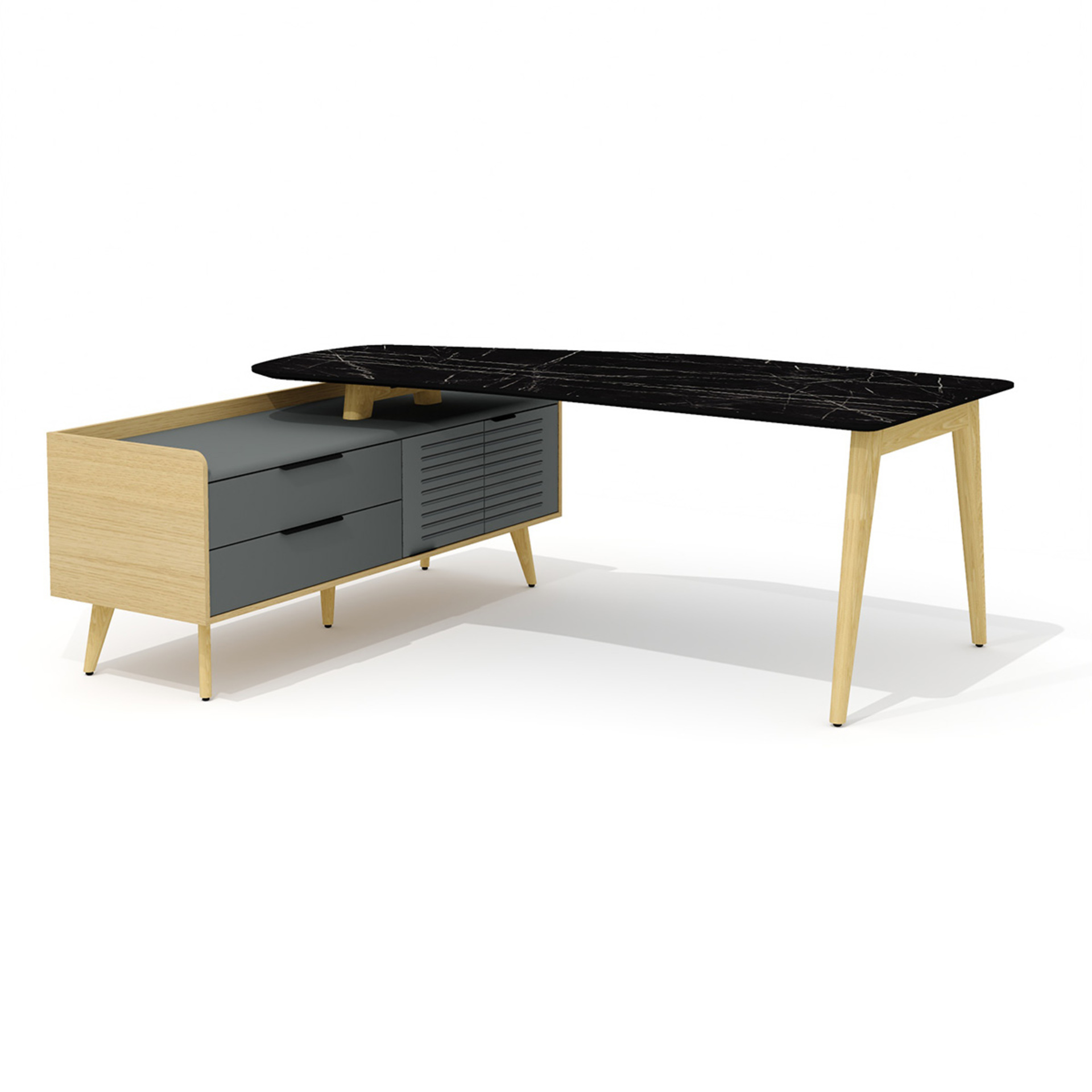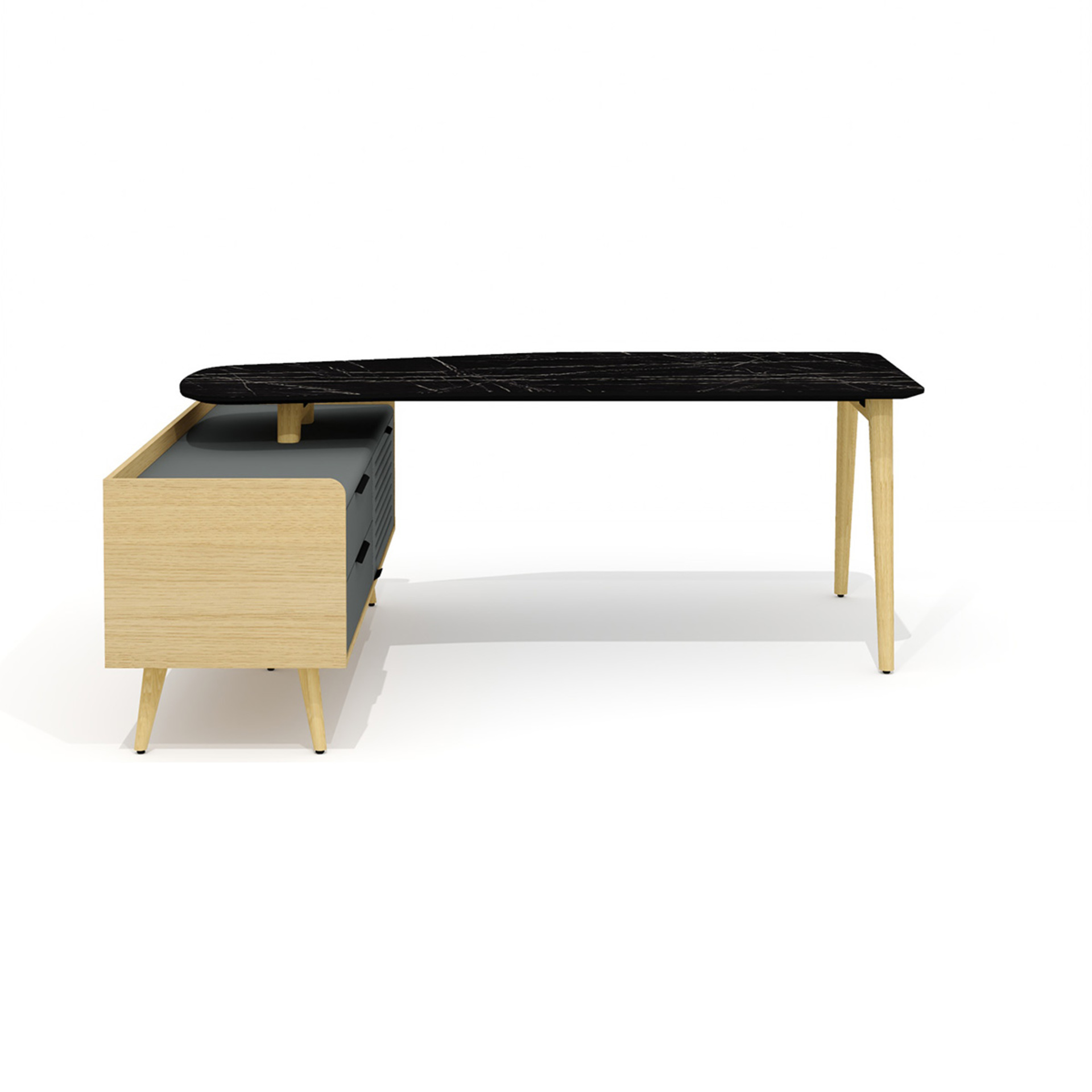 Стол рабочий эргономичный с опорной тумбой Rem-200.1L + Rem-33L