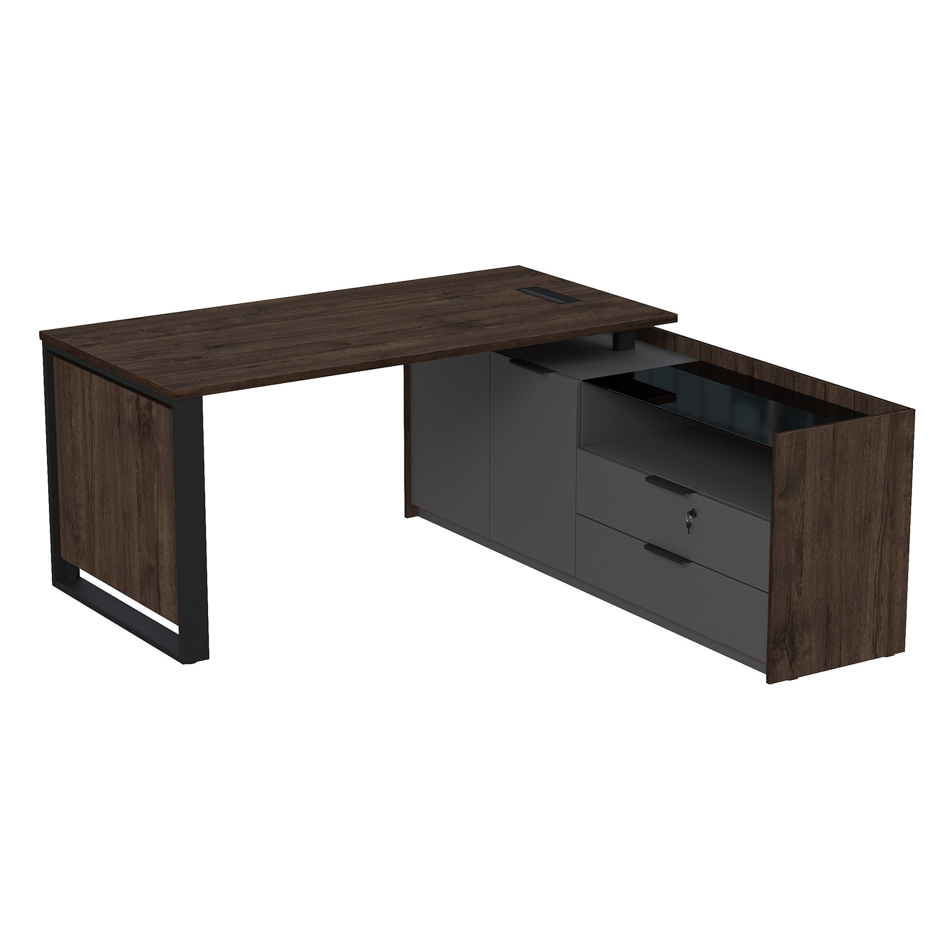 Стол рабочий с люч, на опорной двусоставной тумбе, с ящиками (метабокс), с замком 15СОЛД.1608