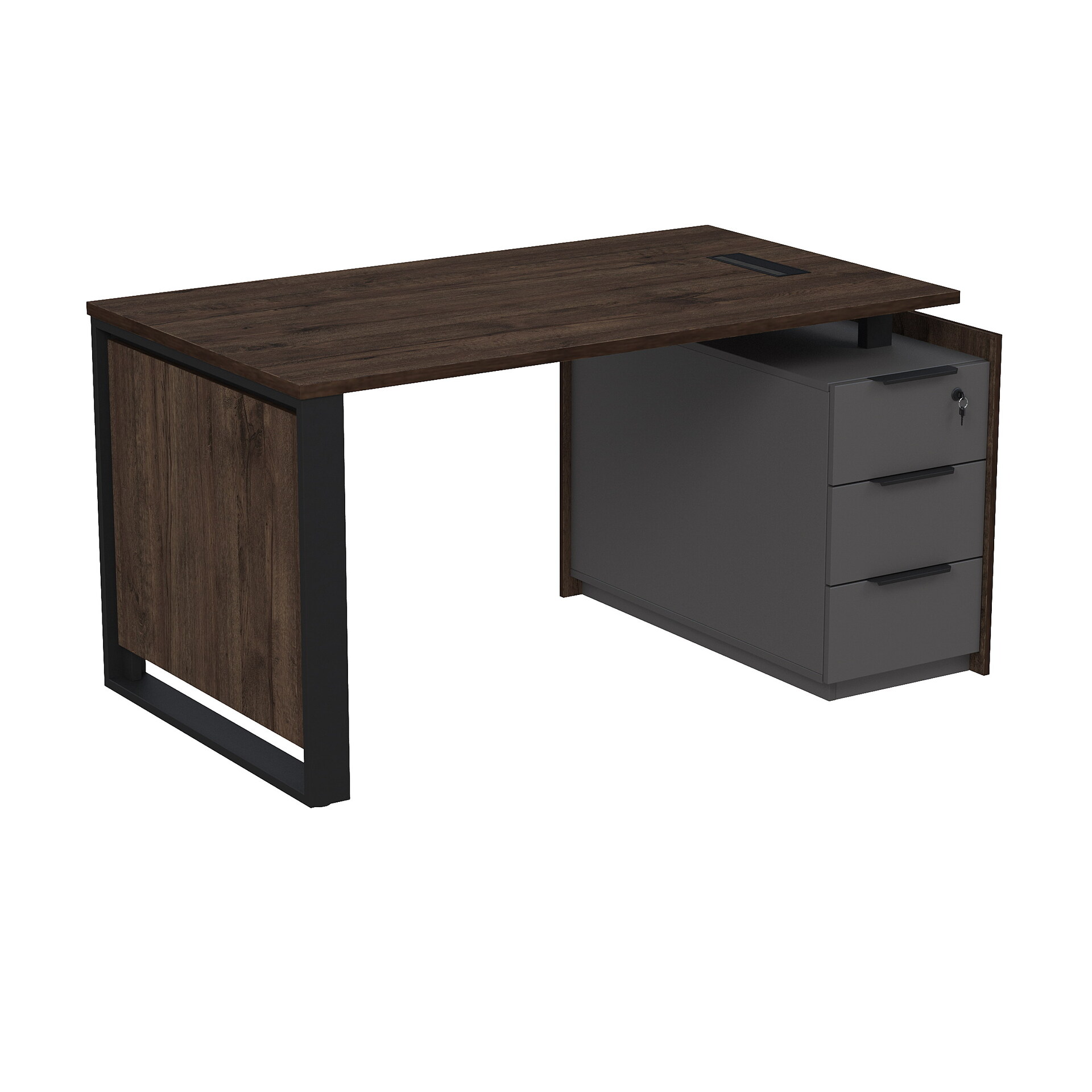 Стол рабочий с люч, на опорной угловой тумбе, с ящиками (метабокс), с замком 15СОЛУ.1408