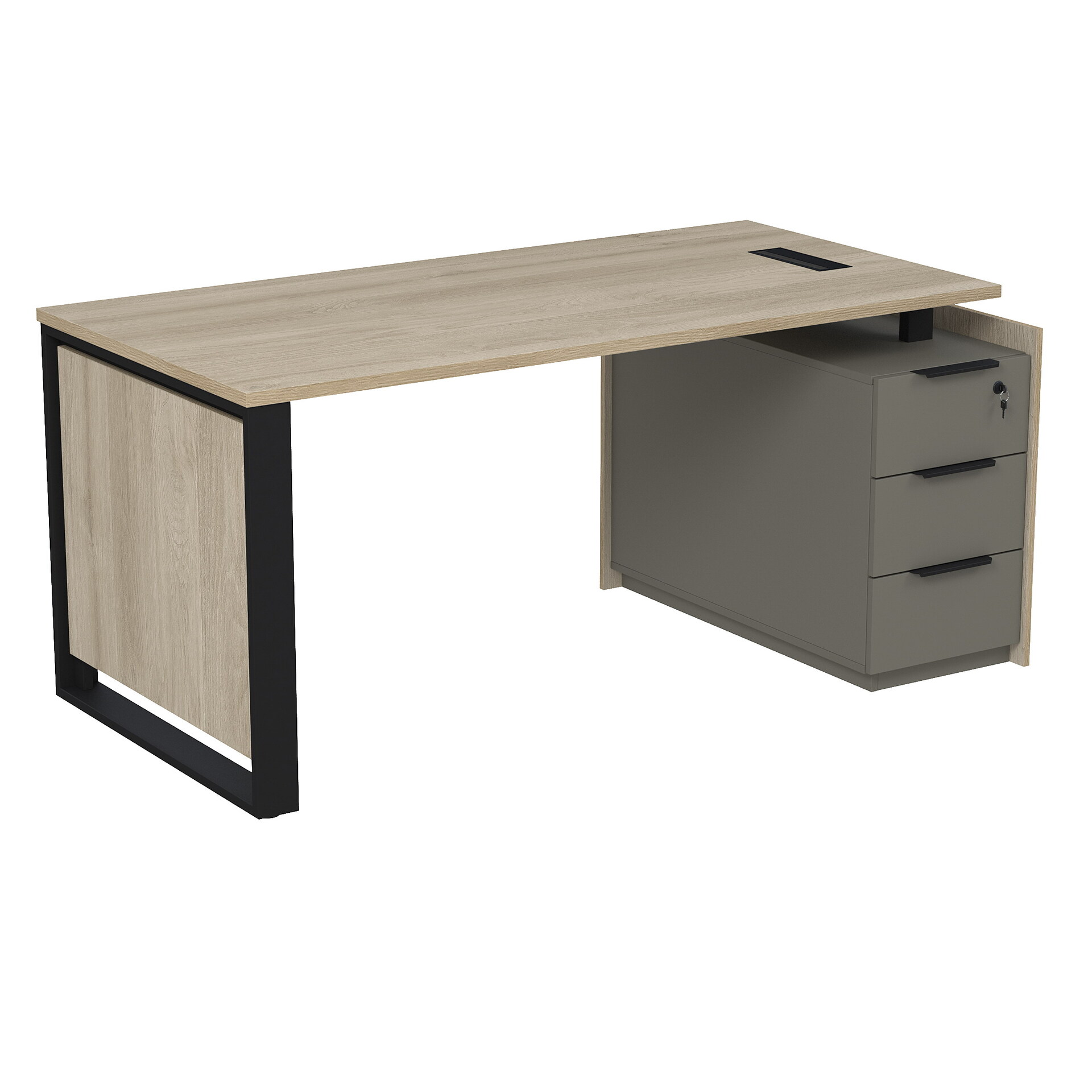 Стол рабочий с люч, на опорной угловой тумбе, с ящиками, с замком 15СОЛУ-ШД.1608
