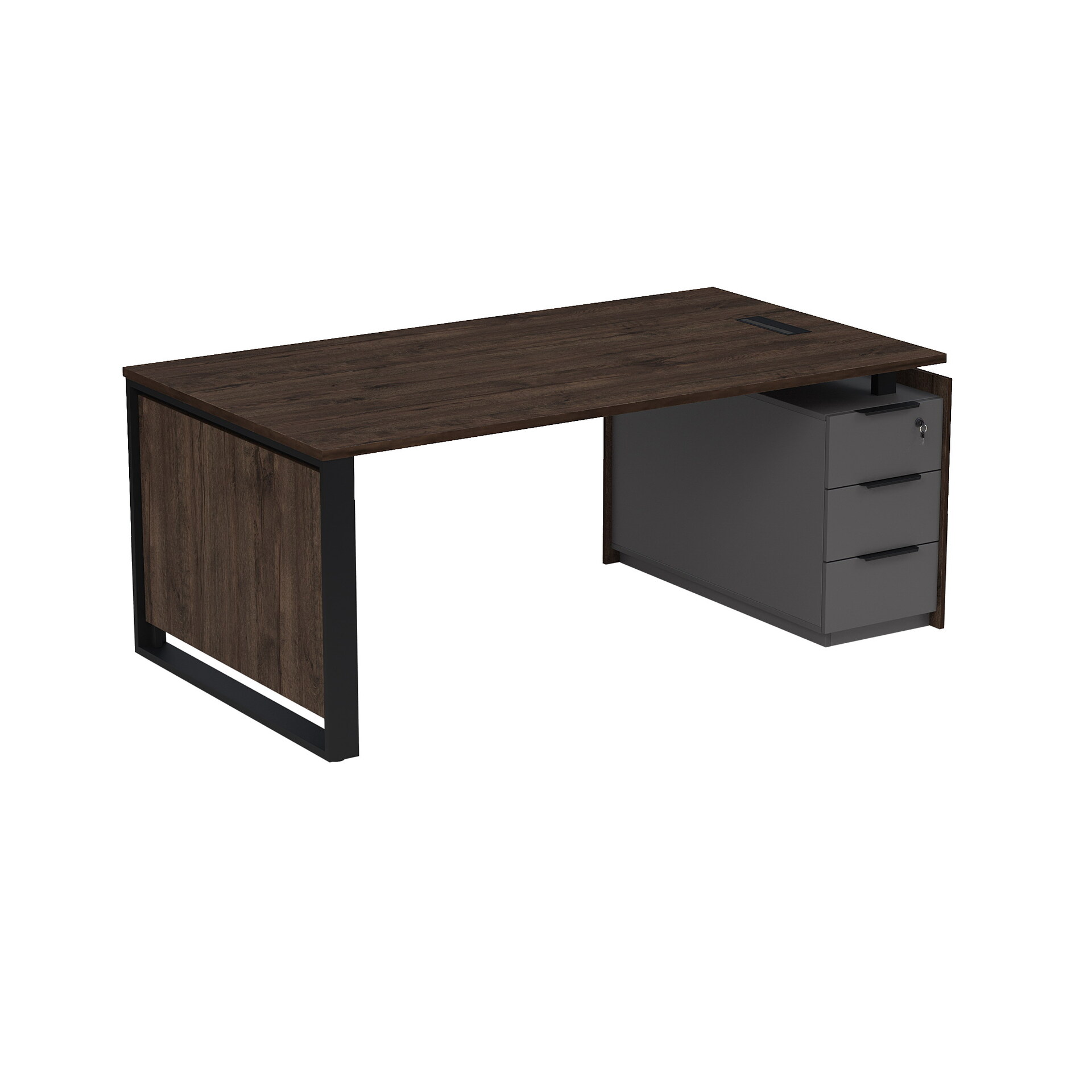 Стол рабочий с люч, на опорной угловой тумбе, с ящиками, с замком 15СОЛУ-ШД.1810