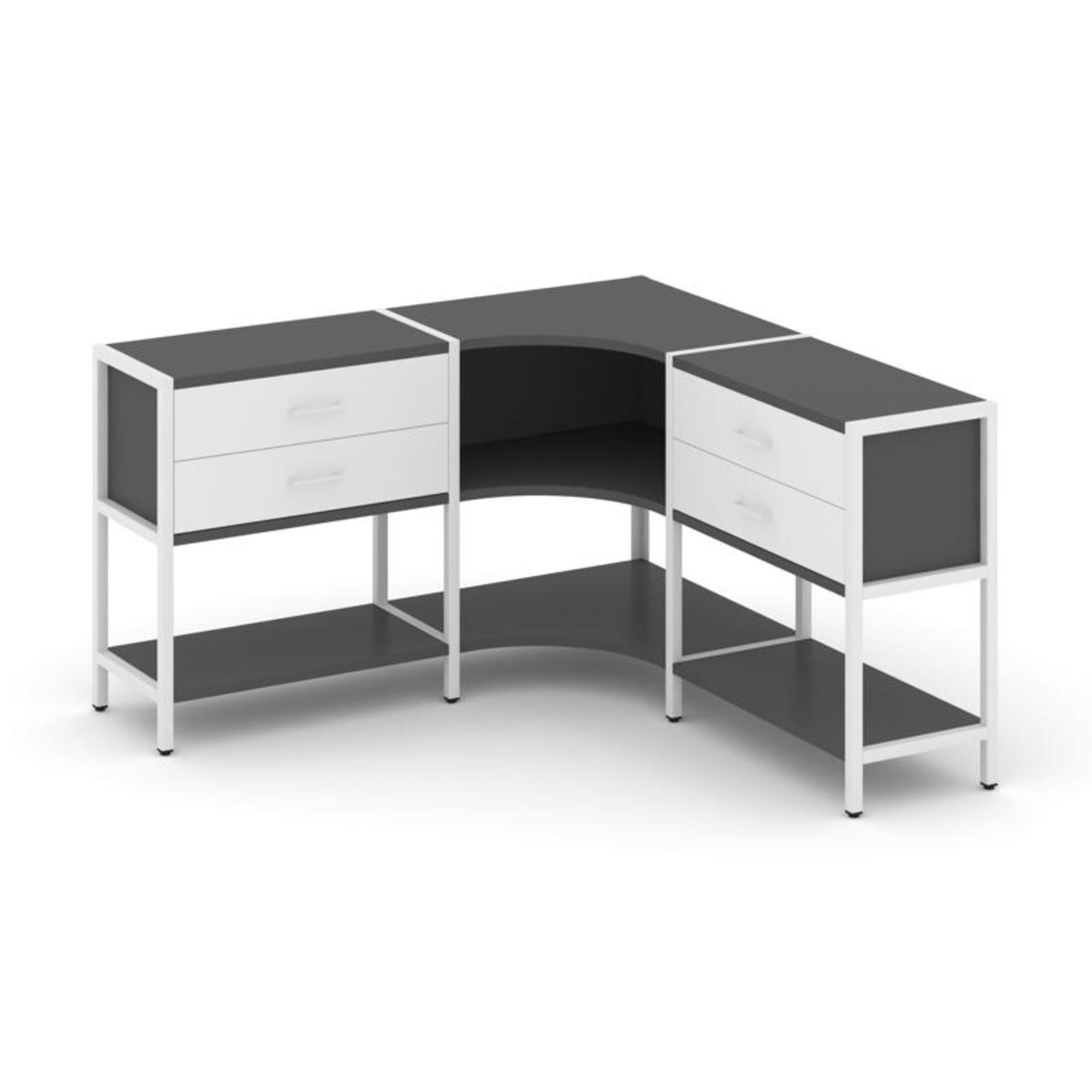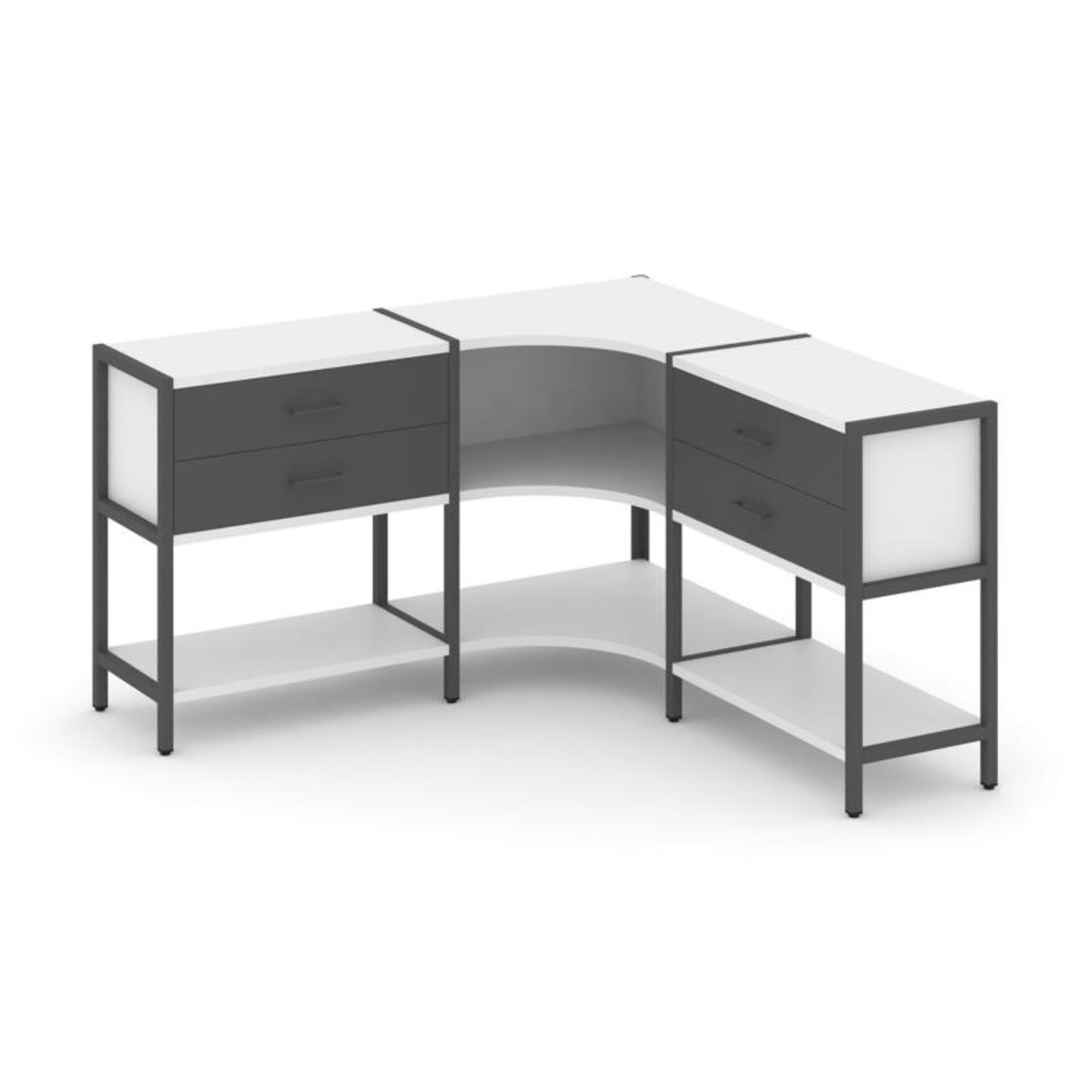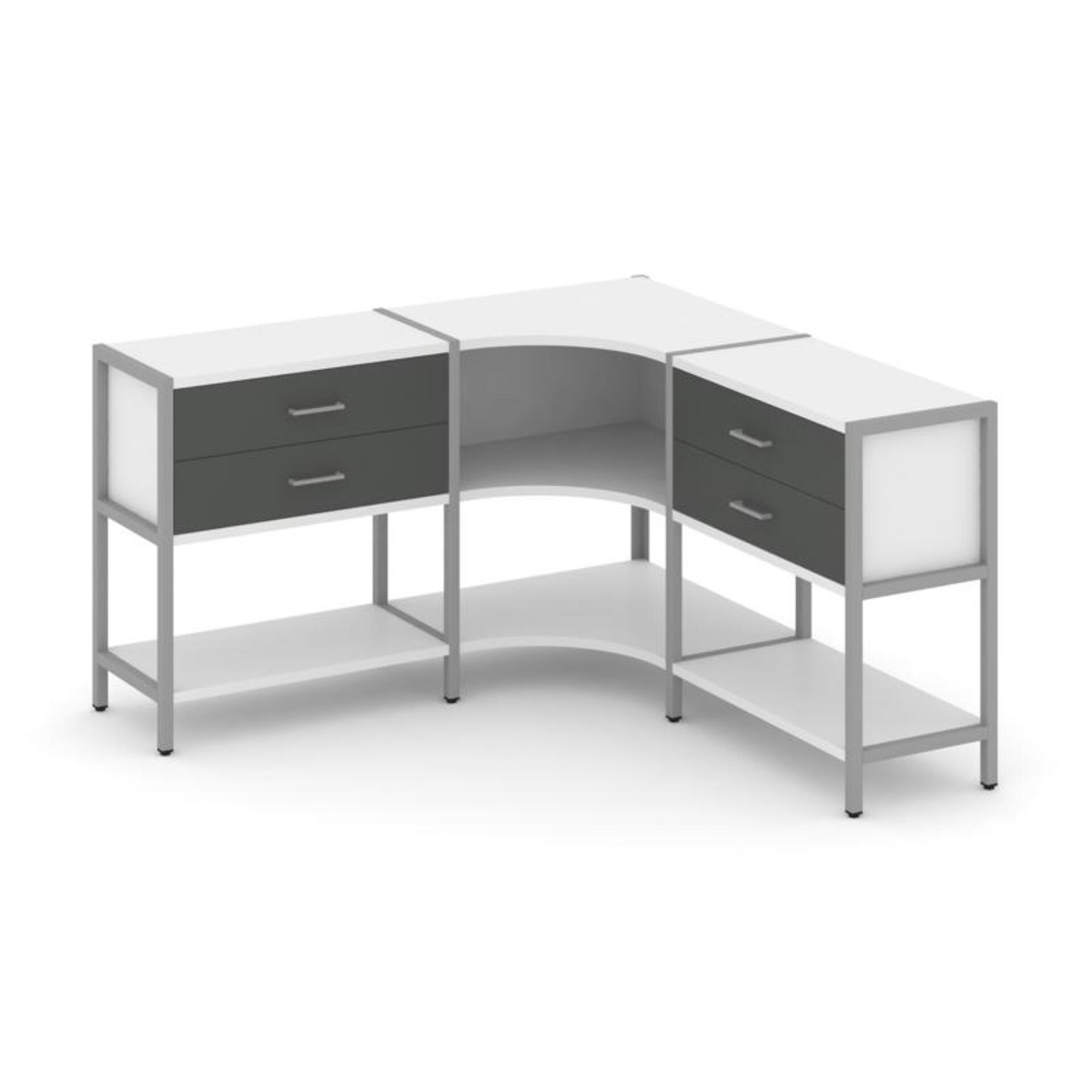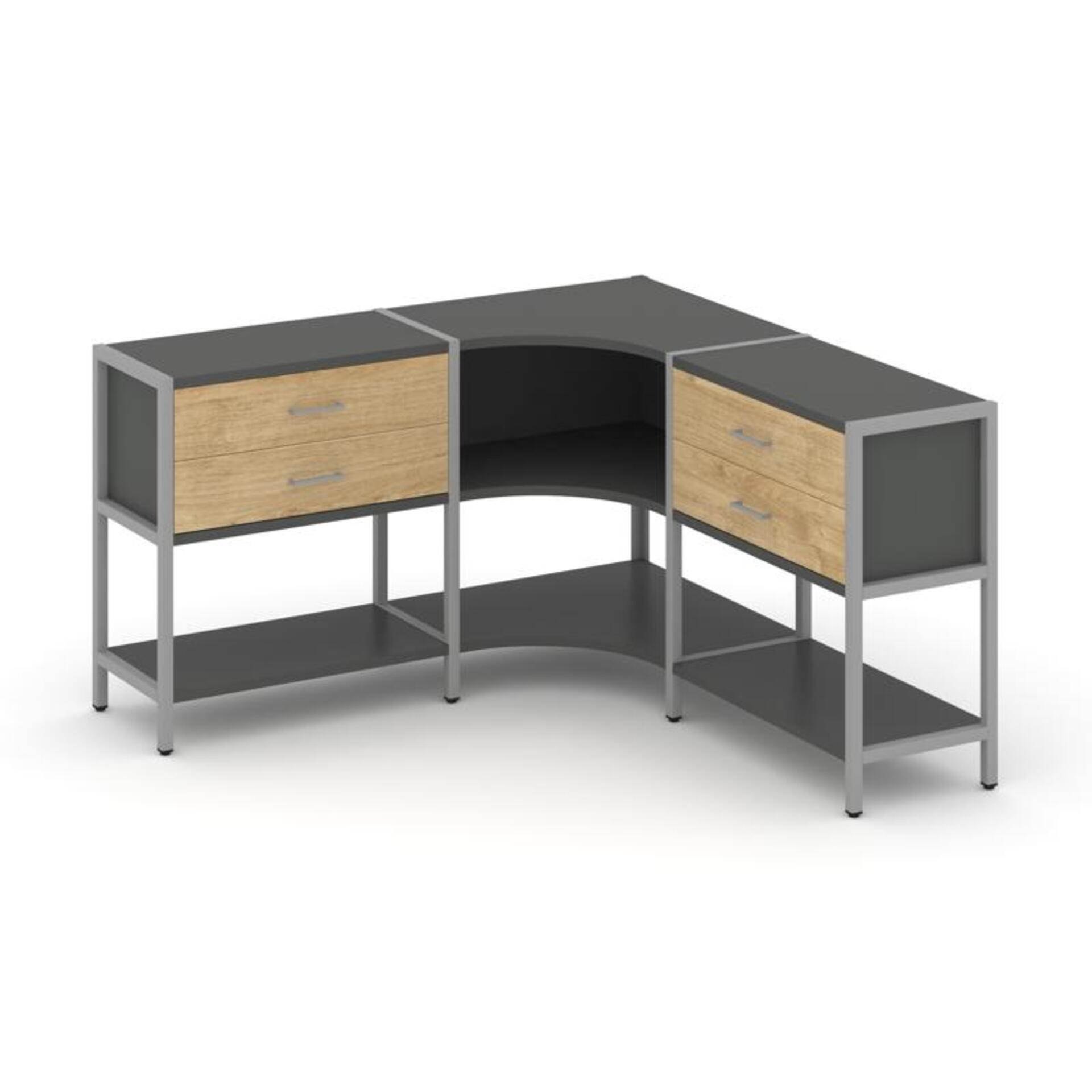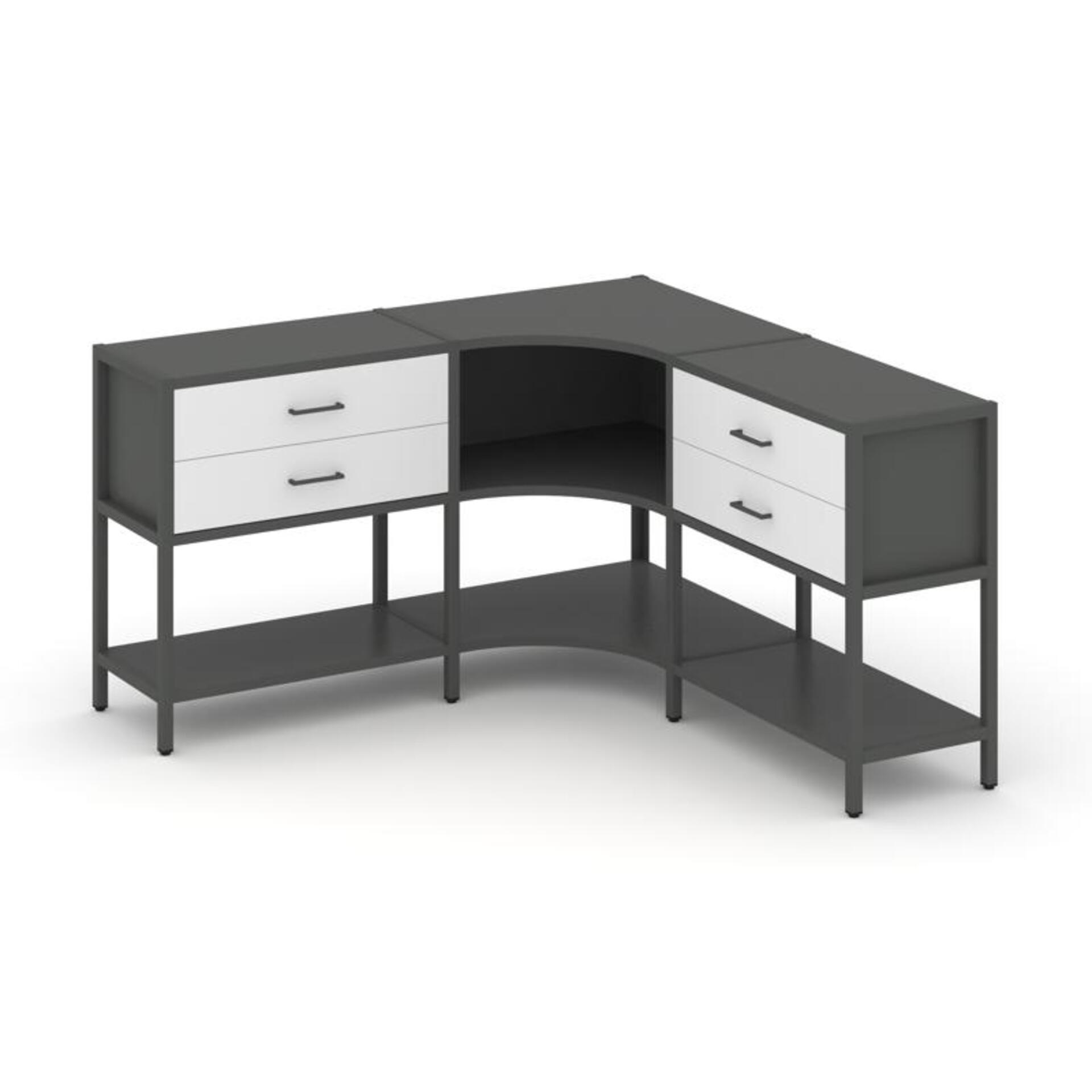 Трехсекционный угловой стеллаж двухярусный с ящиками SN.STMU-231